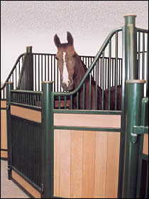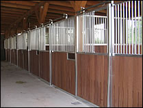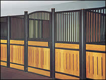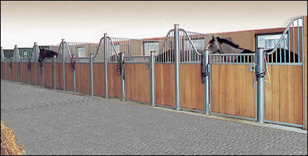 | Mit unserem pferdegerechten Boxen-Angebot gehen wir individuell auf die Gegebenheiten vor Ort und auf Wünsche unserer Kunden ein. Funktionalität und Sicherheit für Mensch und Tier – das steht bei uns an erster Stelle. Basis für gehobenen Qualitätsstandard bilden speziell ausgesuchte Harthölzer und eine sorgfältige Verarbeitung aller Materialien. Um die Langlebigkeit der Box zu gewährleisten, werden alle Stahlteile feuerverzinkt und auf Wunsch noch farblich pulverbeschichtet. Funktionalität und Qualität, gepaart mit ansprechender Optik – das sind Eigenschaften, die unsere Pferde-Boxen-Systeme auszeichnen. Durch die Elementbauweise sind alle Boxenteile kombinierbar, um ausgefallene Lösungen zu realisieren. Luftschlitze in den Vorderwänden z.B. sorgen für eine gute Durchlüftung. |